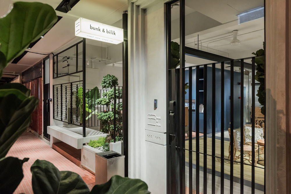 The objective was to transform a pair of four-story intermediate shop lots into a hostel with private rooms and dorms, as well as non air-conditioned shared spaces. One of the challenges associated with such buildings is their long and narrow floor plan, which restricts natural light and airflow to only the front and back windows, resulting in a dark and stuffy central area.