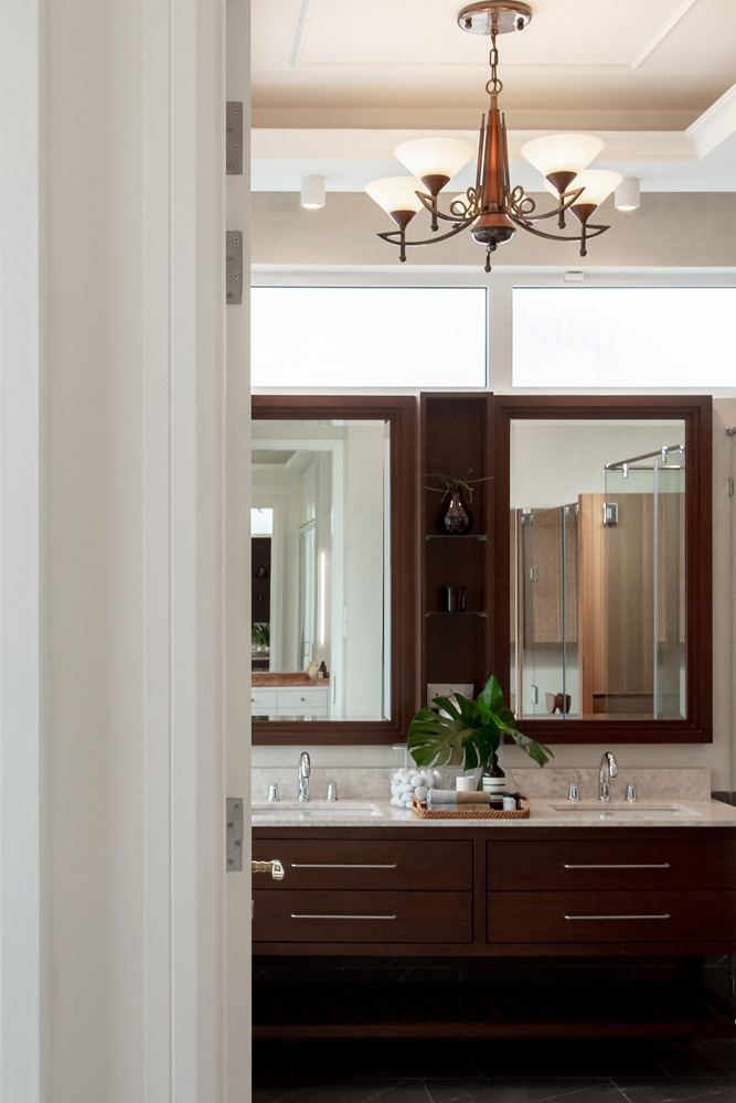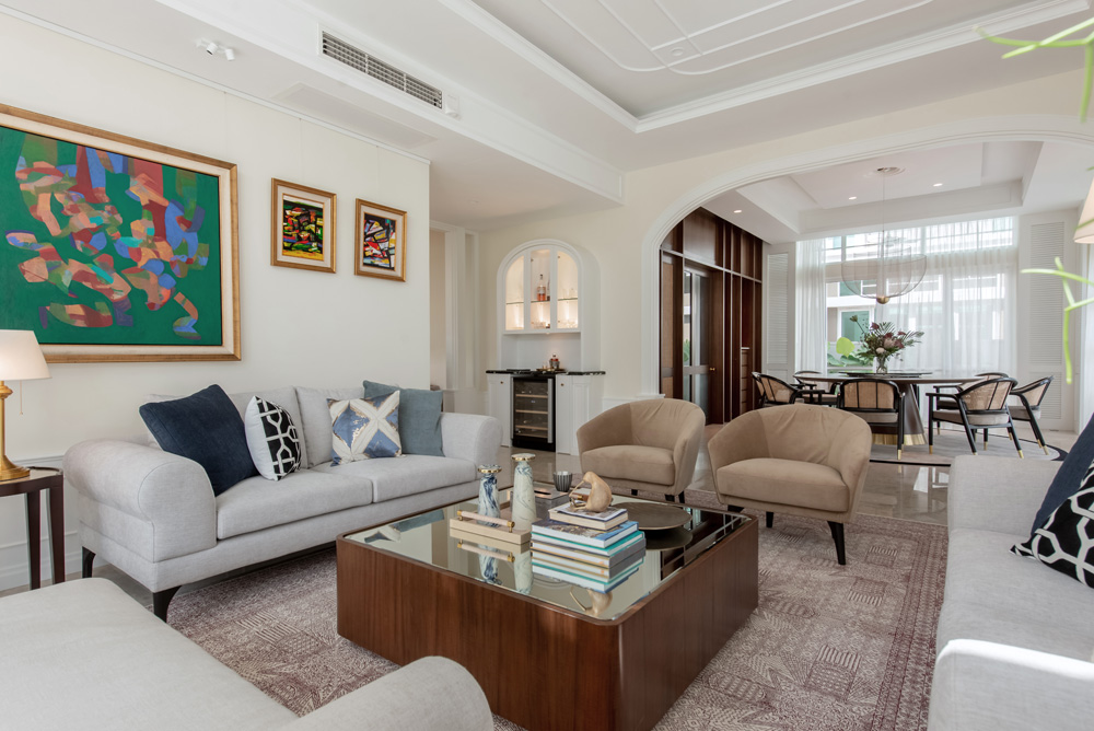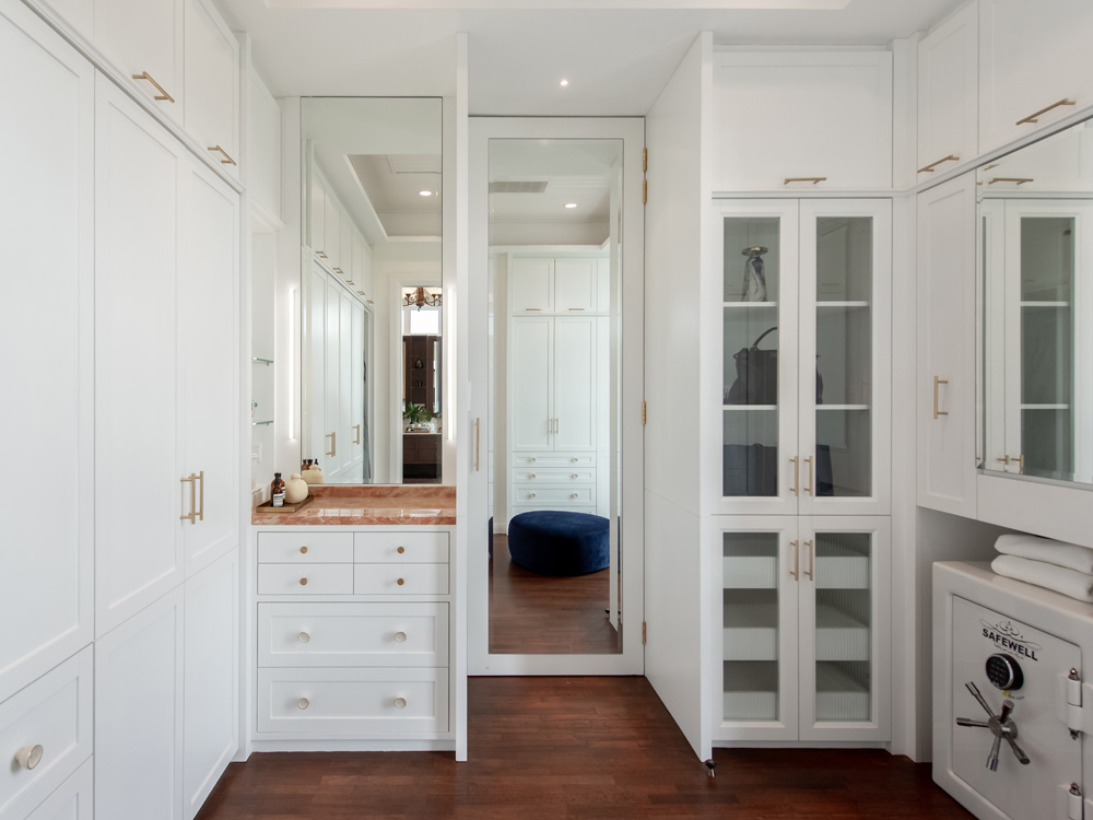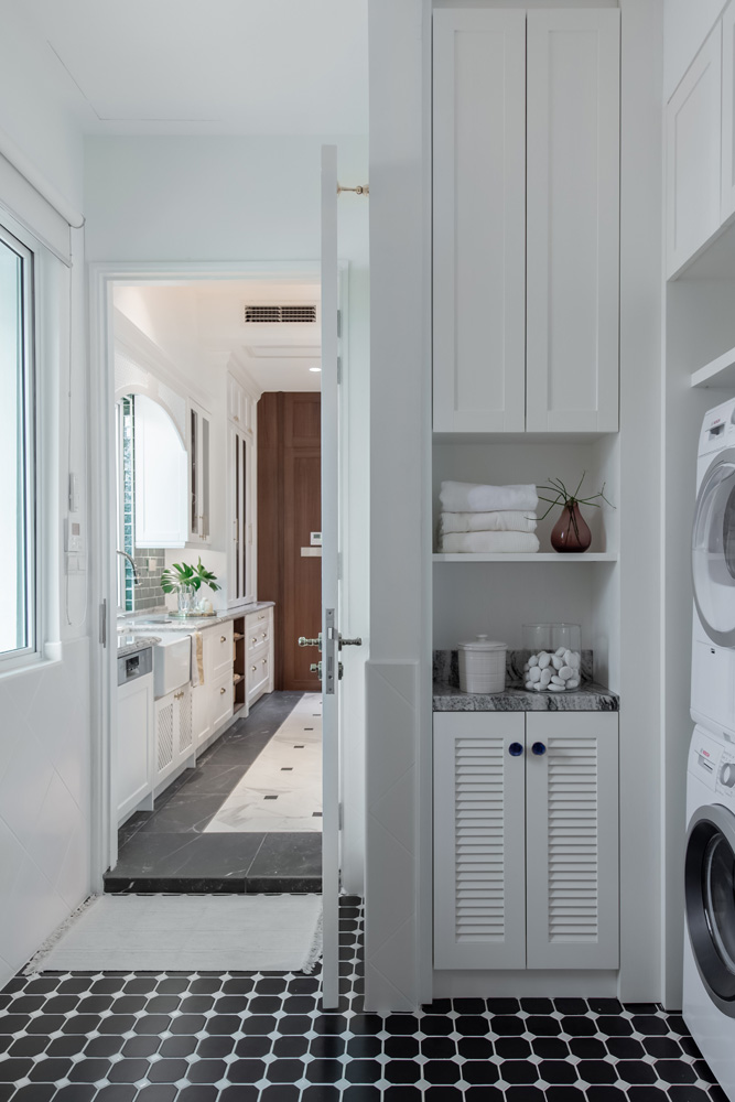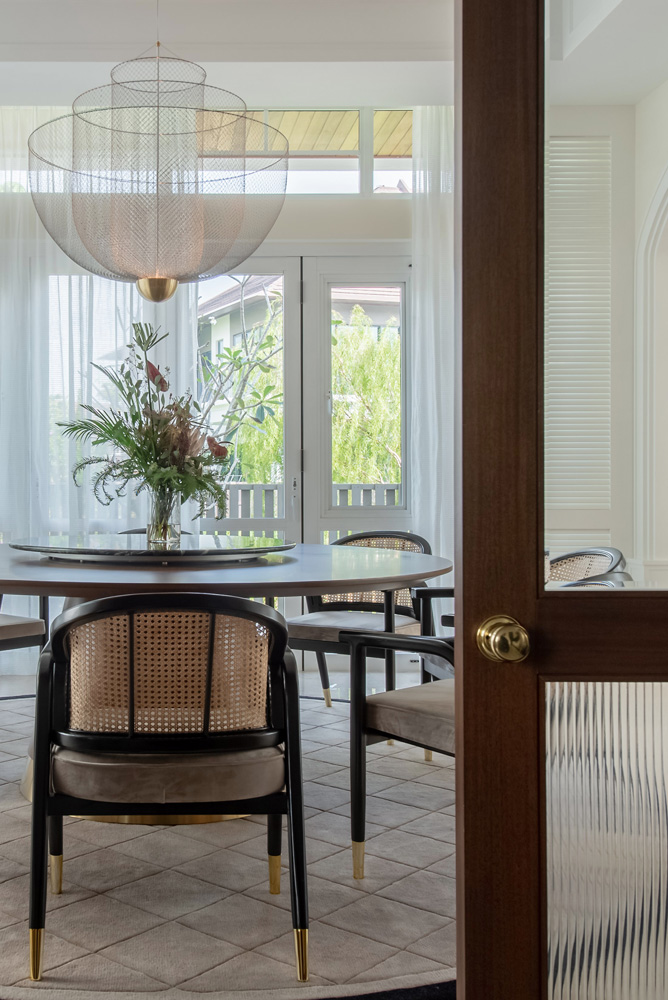 This home remodeling exercise is a journey to recollect fragments of historical sentiment from the Straits Settlements era, which saw the influence of British colonialism on the local region. To ensure aesthetic continuity, we incorporated repeated use of white panellings, architraves and louvered screens, with occasional dark mahogany accents. Wainscoting was lowered to two feet to make way for the homeowner’s vast collection of artwork.